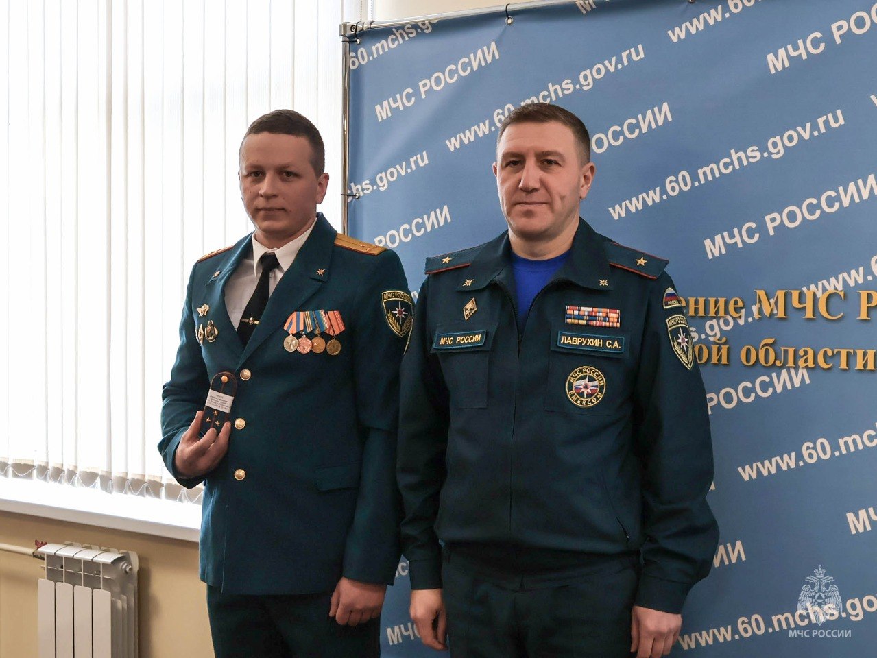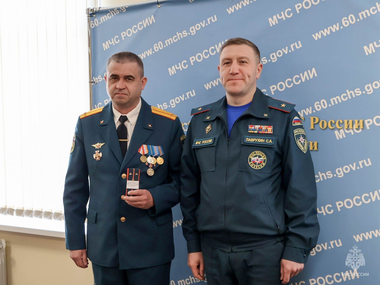 Сегодня руководитель псковского чрезвычайного ведомства Сергей Лаврухин вручил сотрудникам очередные специальные звания среднего начальствующего состава.