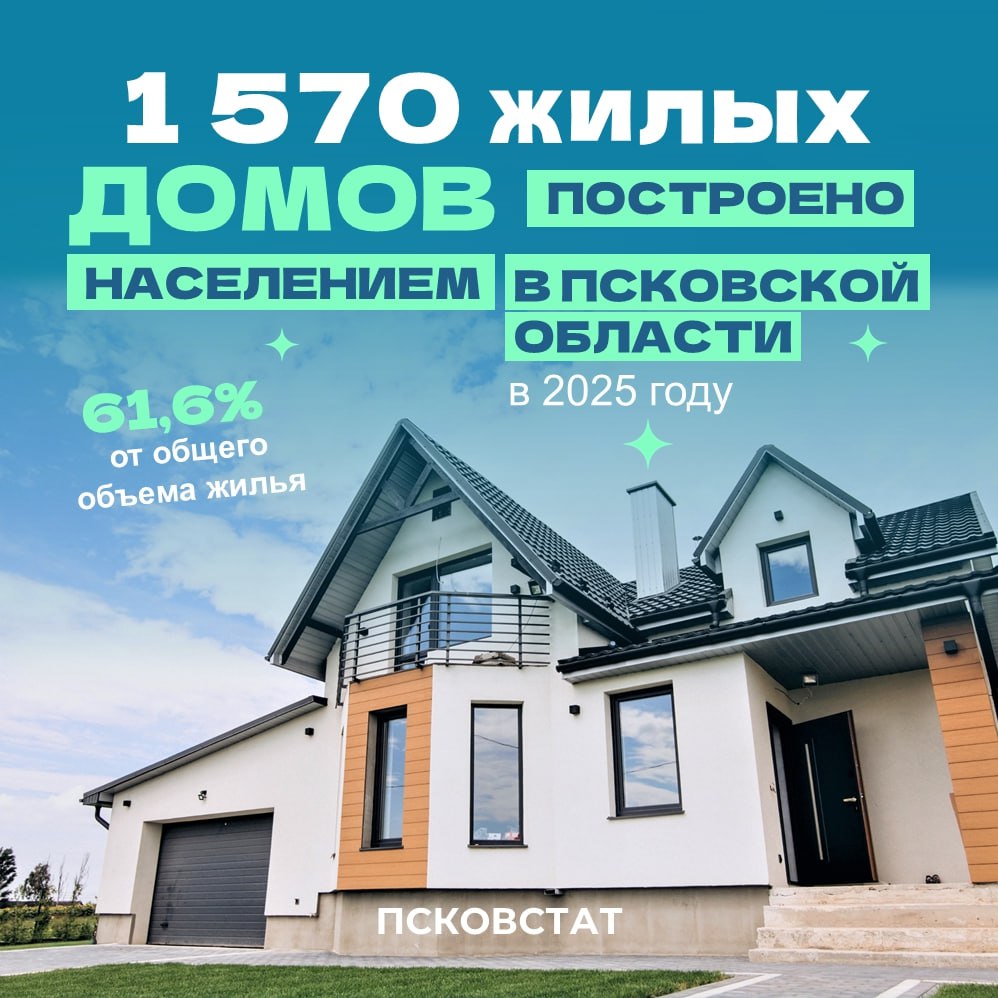 В 2025 году жители Псковской области построили 1570 индивидуальных домов.