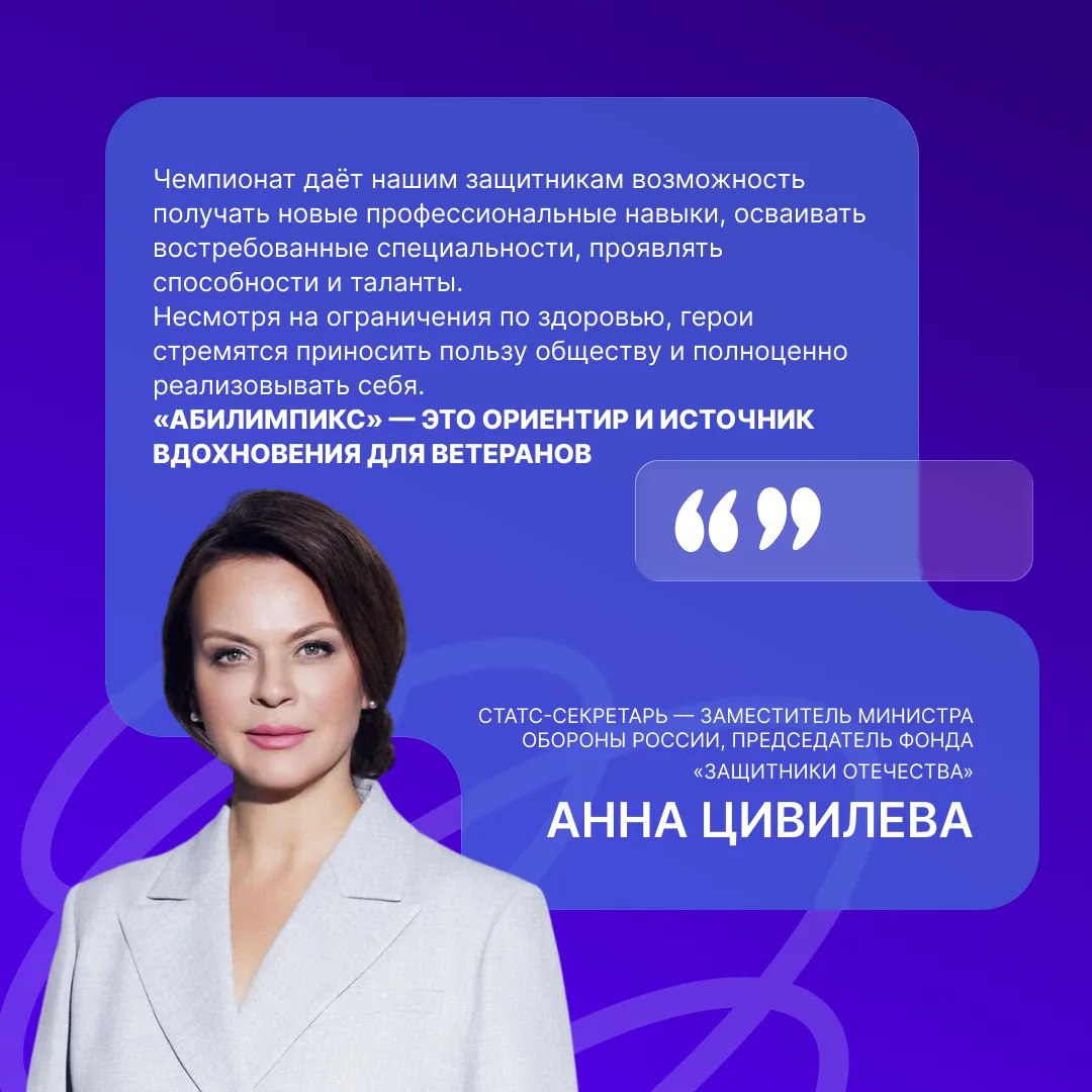 Как отметила Анна Цивилёва, чемпионат даёт ветеранам СВО возможность получить востребованные навыки, раскрыть таланты и оставаться активной частью общества. Для многих участников «Абилимпикс» становится важной точкой опоры и источником вдохновения.