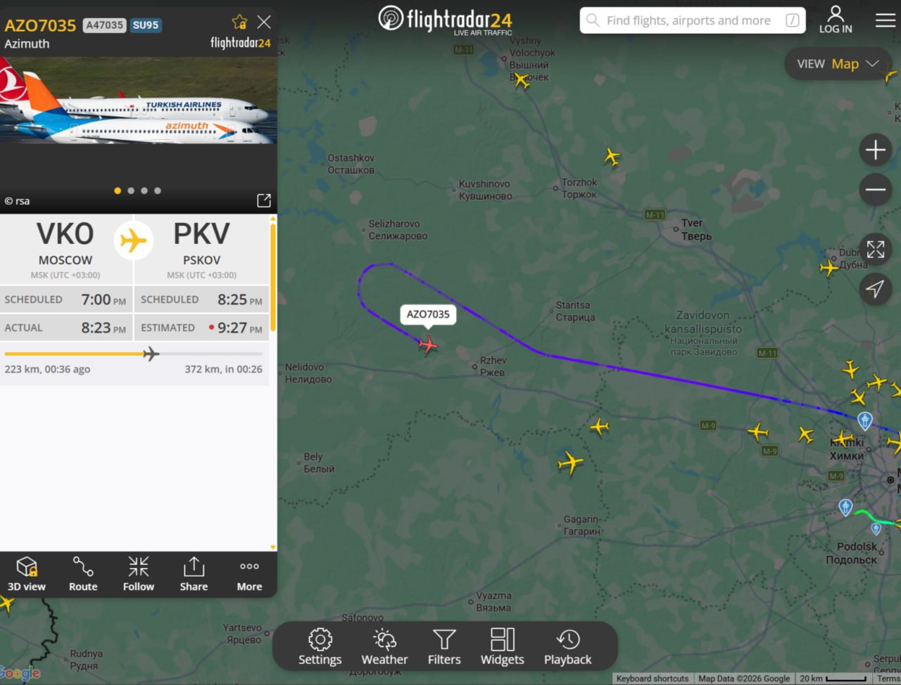 Осталось разобраться, закрыт аэропорт Пскова или не закрыт? Потому что Росавиация о закрытии аэропорта пока не сообщала. Самолет Москва—Псков, между тем, вылетел из Внуково в 20:24 в направлении Пскова. ПЛН в MAX// Псковская Лента Новостей