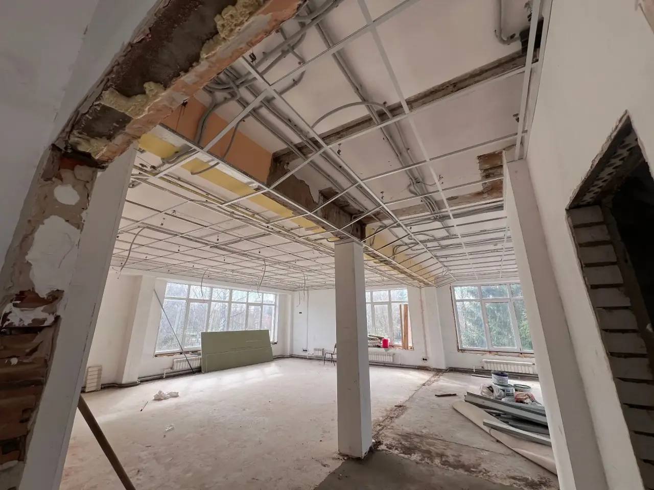 На сегодняшний день работы ведутся в двух корпусах гимназии. Уже удалось запустить систему отопления по временной схеме, разобрать кирпичные перегородки, параллельно подрядчик занимается устройством полов и ремонтом кровли.