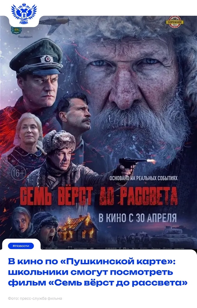 Военно-историческая драма «Семь вёрст до рассвета», основанная на реальных событиях времён Великой Отечественной войны, выйдет в прокат 30 апреля 2026 года.
