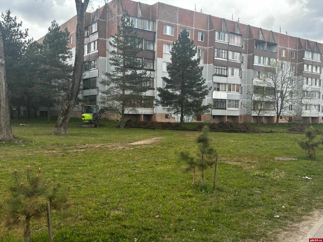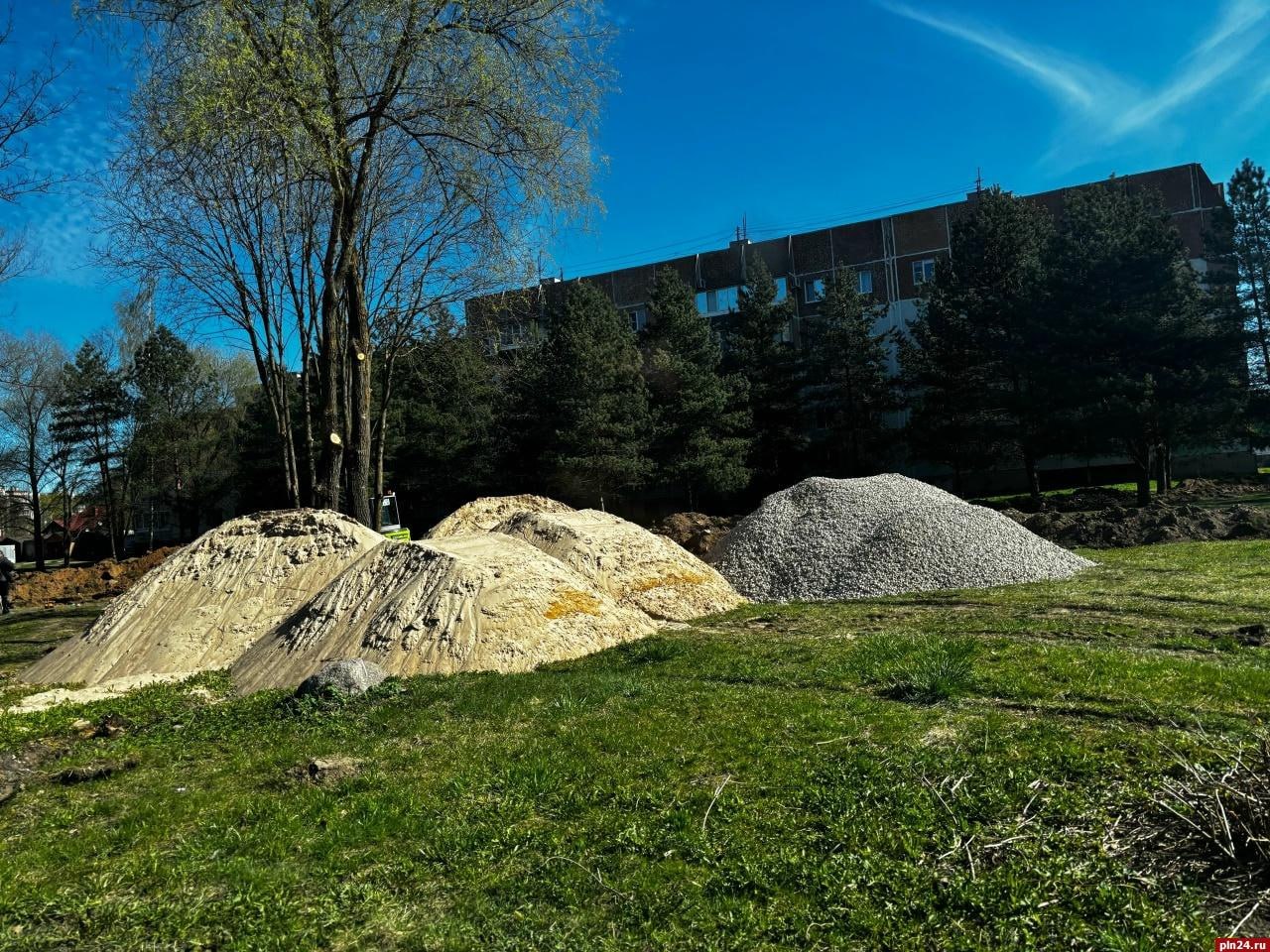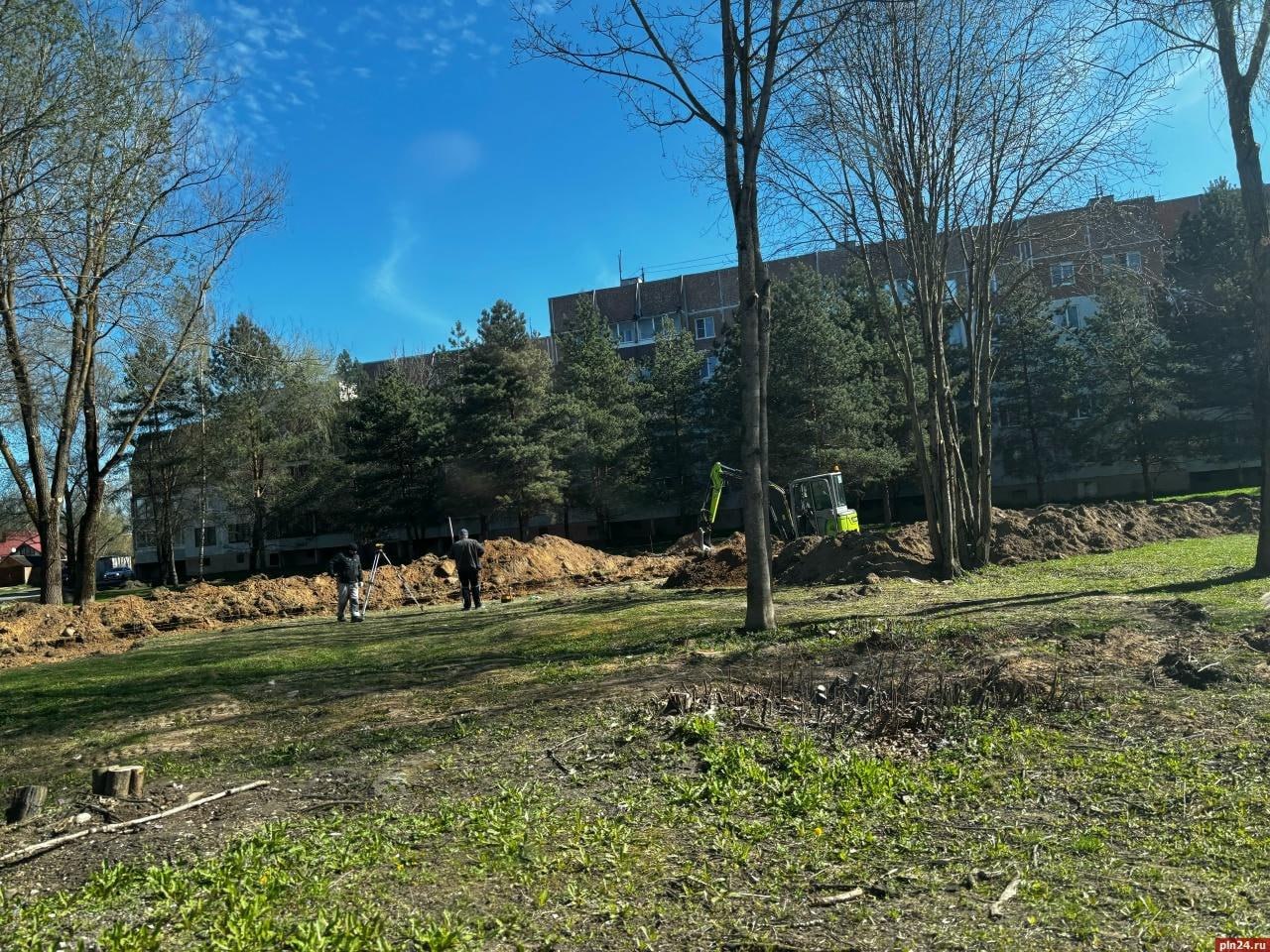 На улице Индустриальной в Пскове благоустраивают сквер