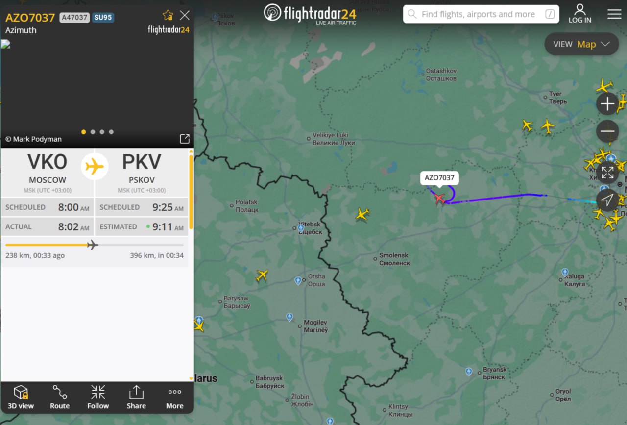 Вылететь-то он вылетел, но теперь нарезает круги в зоне ожидания на границе Псковской и Смоленской областей