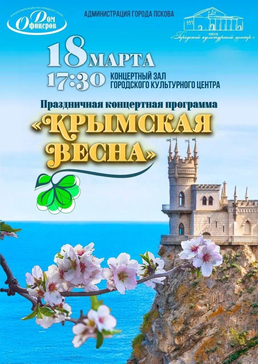Сегодня вся страна отмечает 12 годовщину воссоединения Крыма с Россией. В честь этого знаменательного дня в Городском культурном центре пройдёт концерт «Крымская весна».