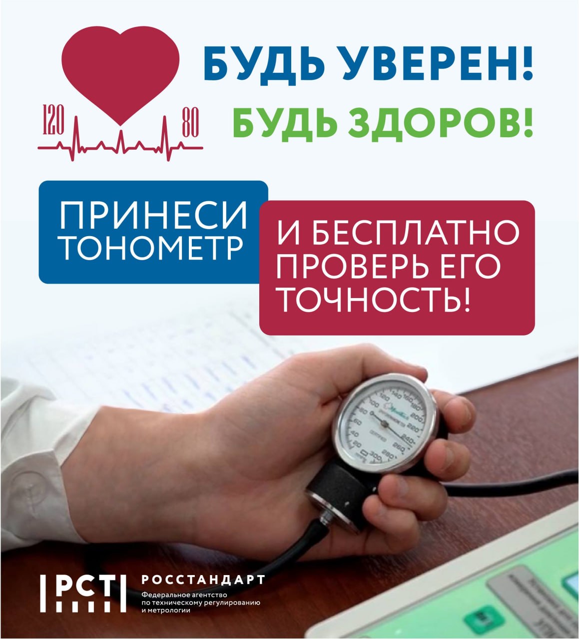 В рамках акции специалисты ФБУ «Псковский ЦСМ» с 6 по 8 апреля будут вести приём граждан для бесплатной проверки домашних тонометров, а также дадут рекомендации по его использованию.