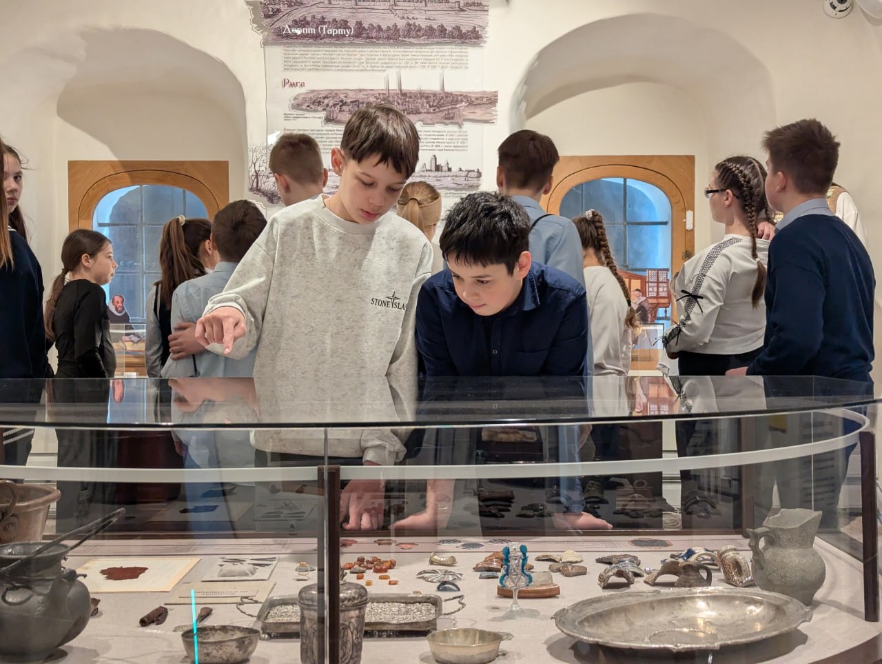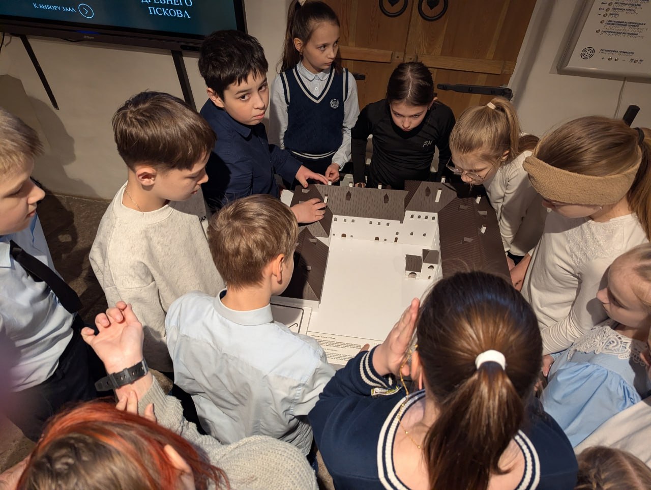 В ходе экскурсии ребята посетили экспозиции «Кабинет купца Поганкина» и «Историческая топография Пскова XVI-XVII вв.», где представлен макет Пскова XVII века.