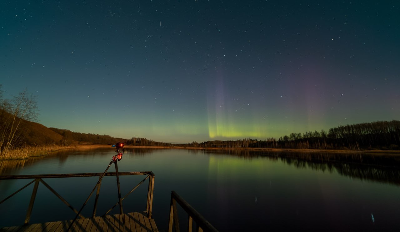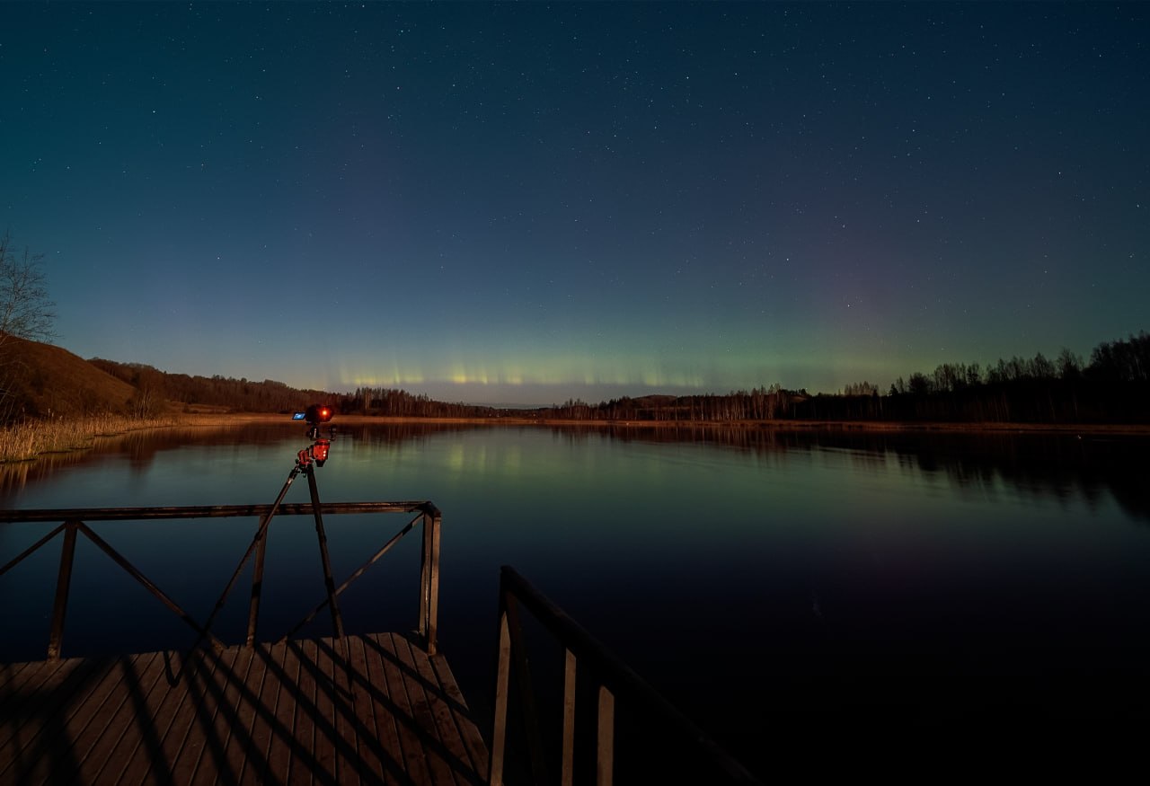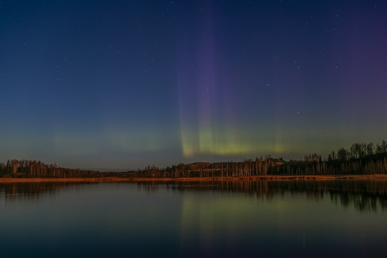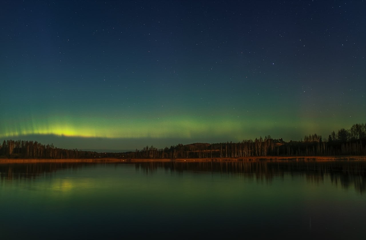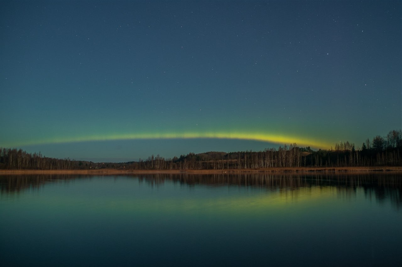 Псковский астроном-любитель Петр Митрофанов запечатлел в ночь на 3 апреля полярное сияние над Городищенским озером в Изборске, фото он разместил в группе «АстроПсков» в социальной сети «ВКонтакте».