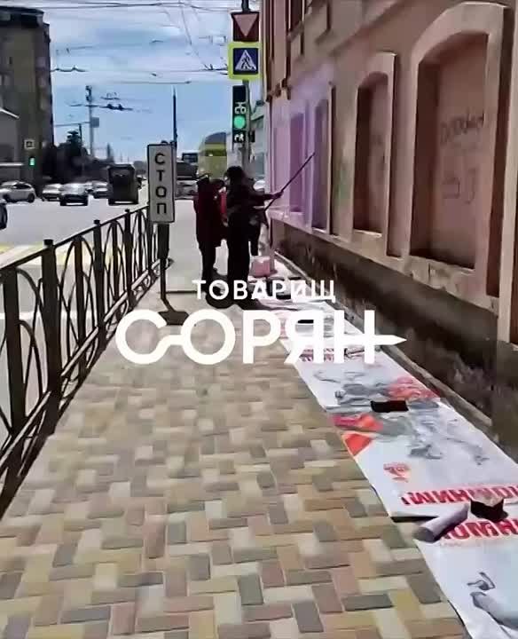 «Прекрасная» новость из Ставрополя: рабочие красили фасад – и в качестве защитного покрытия использовали прошлогодние баннеры, подготовленные ко Дню Победы. Топтались по надписи «Помним». Розовая краска летела на портреты красноармейцев. Дело спорилось, пока кощунство не пресекли прохожие. Патриотические баннеры после замечания заменили клеёнкой. А почему сразу нельзя было так делать? Обязательно нужно надругаться над тем, что для каждого русского свято?