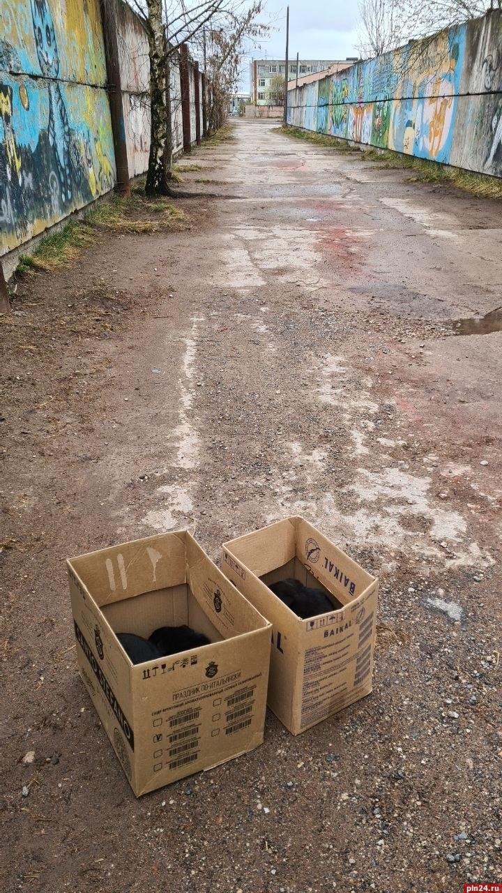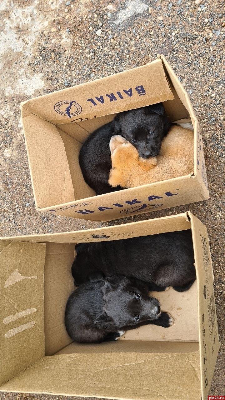 Две коробки со щенками подкинули в псковскую «Лесопилку»