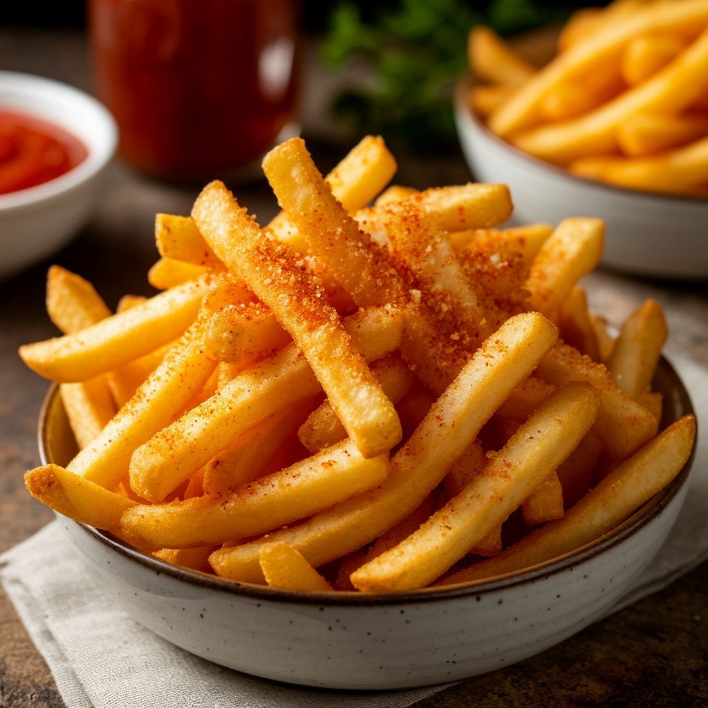 Разогрев духовки: Установите температуру на 220-230°C.Подготовка картошки: Тщательно промойте картофель. Чистить его не обязательно – в кожуре содержится много полезных веществ. Нарежьте брусочками толщиной около 1 см.Сушка: Высушите нарезанные кусочки при помощи бумажных полотенец. Это критически важно: чем суше картошка, тем хрустящей она получится.Смешивание: В глубокой миске соедините картошку с растительным маслом, солью и специями, чтобы состав обернул каждый кусочек.Выкладывание на противень: Застелите противень пергаментом для удобства, разместите картошку в один слой: кусочки не должны пересекаться.Запекание: Поместите в заранее разогретую духовку и выпекайте 20-25 минут. Затем аккуратно переверните лопаткой и продолжайте запекать еще 10-15 минут, до золотистой корочки.Подача: Наслаждайтесь горячей и хрустящей картошкой фри с любимым соусом или кетчупом.Совет для ускорения процесса