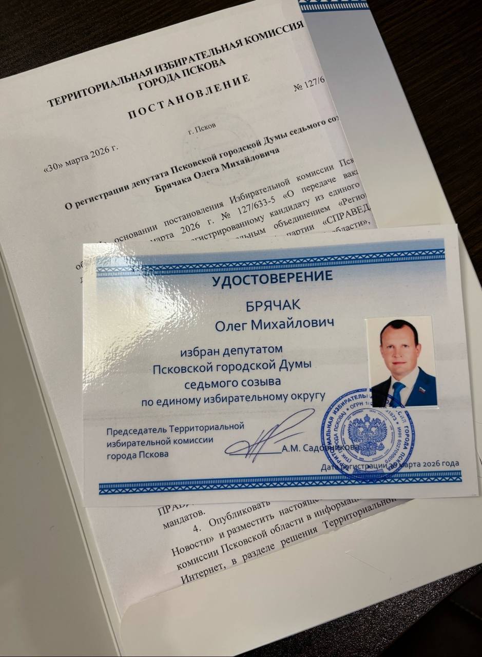 Олегу Брячаку вручили удостоверение депутата Псковской городской Думы