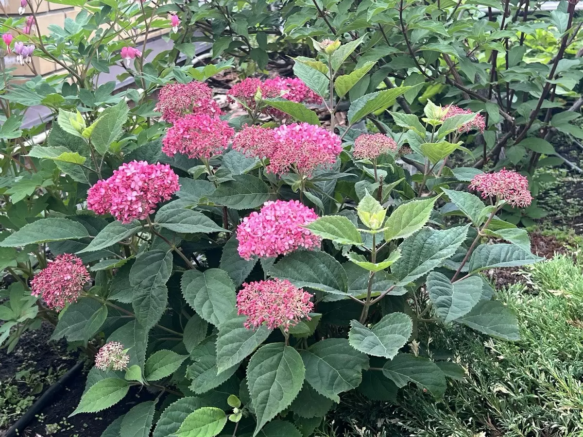 Минимальное вмешательство: только санитарная обрезка. Черешковые гортензии не требуют обрезки, лишь удаляют побеги, выбивающиеся за пределы.