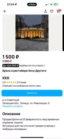 Что только не придумают жители Липецка! На платформе Avito появилось объявление, которое явно способно затмить любой сюжет многосерийного фильма. В преддверии праздника 23 февраля один из местных бизнесменов решил продать не что иное, как бронь в популярном рестобаре.