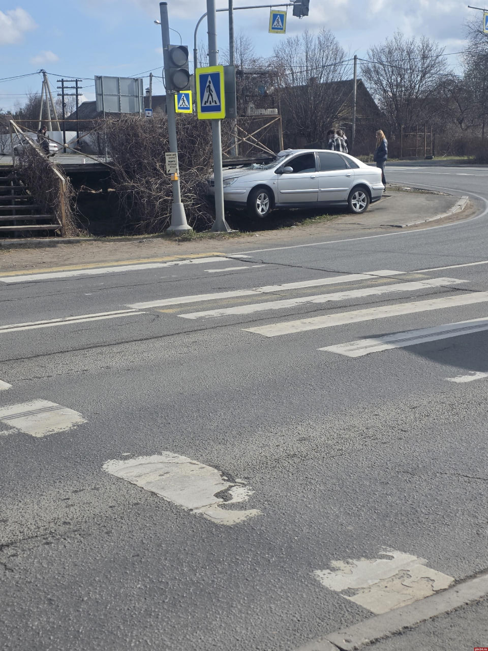 Автомобиль съехал в кювет на перекрестке в псковской Черехе
