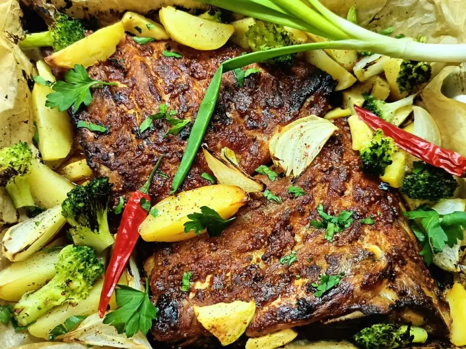 - Белки: запеченная курица, индейка или рыбные стейки.