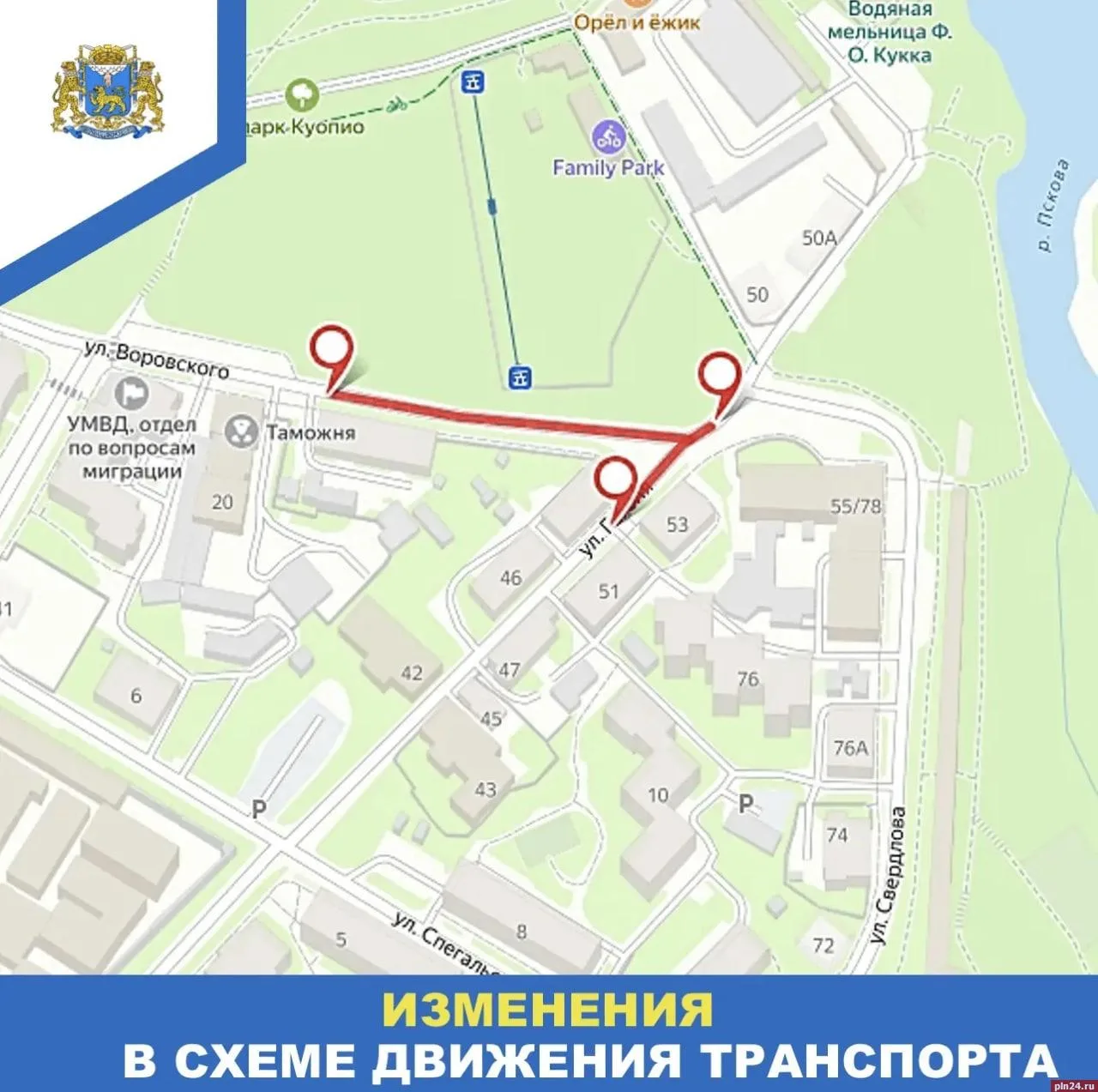 Проезды в районе областного казначейства в Пскове перекроют 17 апреля
