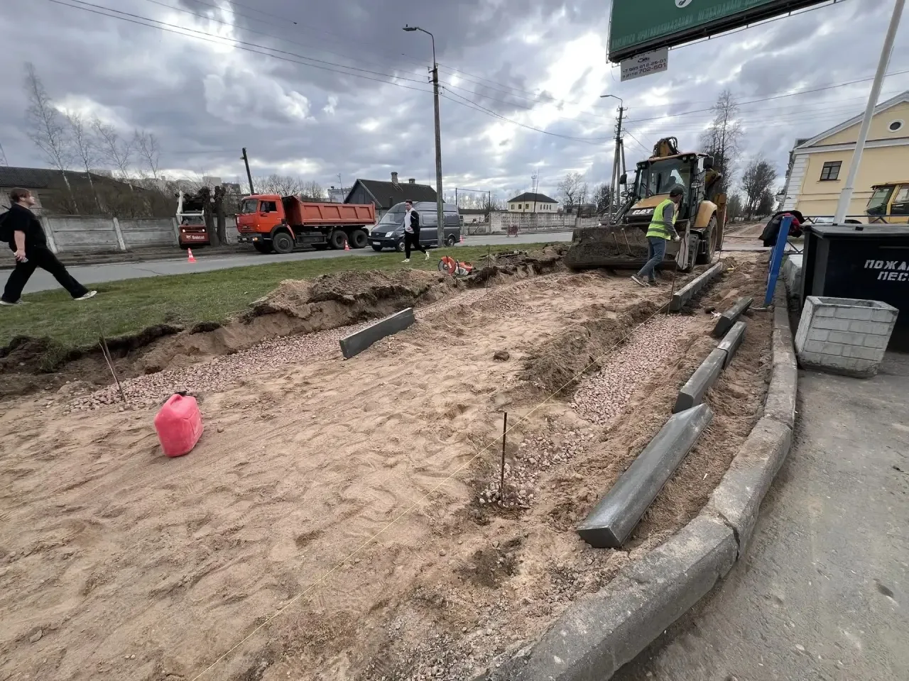 На участке от улицы Льва Толстого до Октябрьского проспекта ведется установка бортового камня. У дома №24 по улице Вокзальной бортовой камень уже смонтирован.