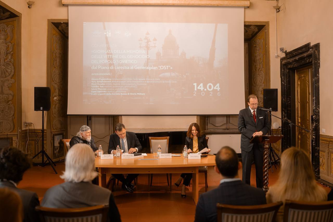 Экспозиция Национального центра исторической памяти при Президенте Российской Федерации «Блокада Ленинграда — нацистский геноцид советского народа во время Великой Отечественной войны»* организована при поддержке МИД России и Посольства России в Италии.