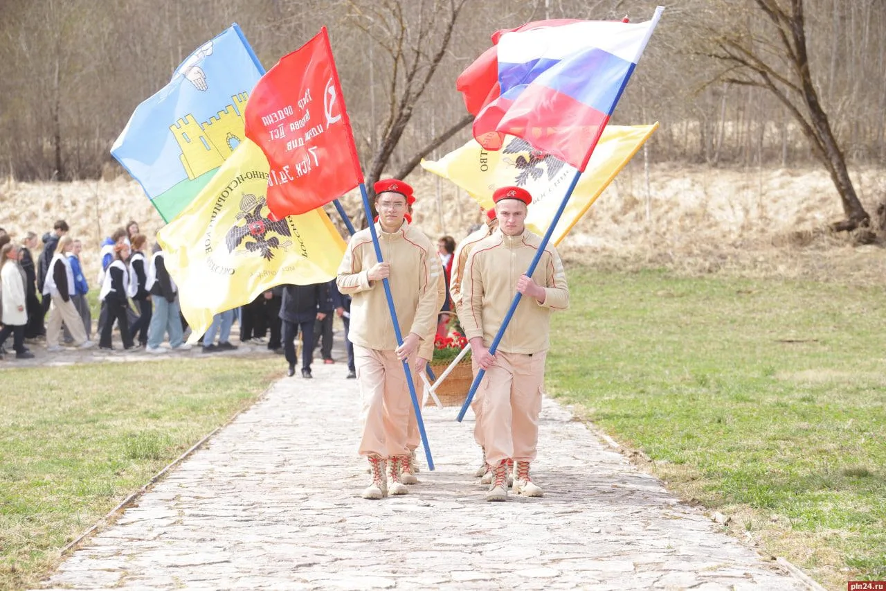 В мероприятии приняли участие председатель Псковского областного Собрания Александр Котов, депутат Псковской городской Думы Антон Мороз, ветераны, общественники, молодёжь, школьники.
