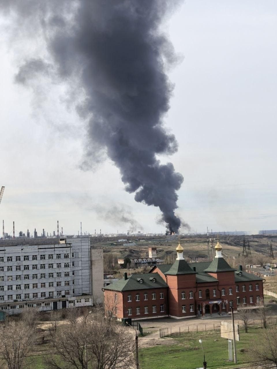 В Самарской области сообщают о пожарах на нефтеперерабатывающих предприятиях — в Новокуйбышевске (фото 1) и Сызрани (фото 2). Информация об ущербе уточняется. Один из вражеских БПЛА упал рядом с роддомом в Новокуйбышевске, в здании выбиты стёкла. Никто не пострадал.