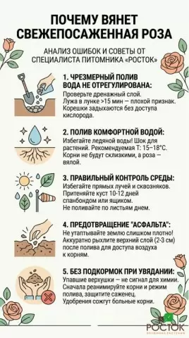 Первые две недели после посадки — это время адаптации. Помните об условиях: правильный подход поможет вашей розе «схватиться» за новое место и зацвести насыщенными, яркими цветами.