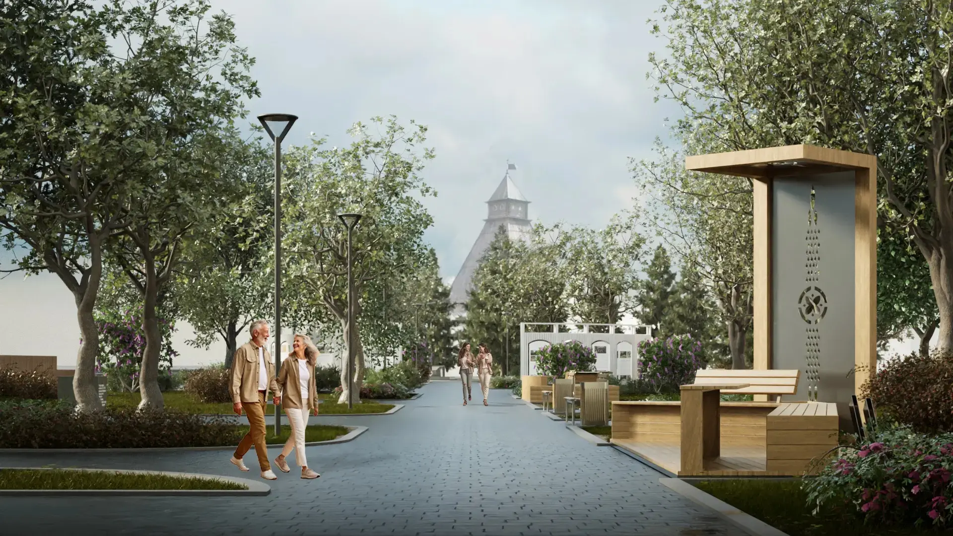 — обновлённая аллея — позволит превратить транзитный маршрут в прогулку: скамейки, столики, места для остановки;