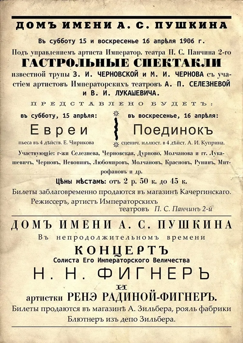 На её подмостках выступали Вера КОМИССАРЖЕВСКАЯ, Фёдор ШАЛЯПИН, Константин ВАРЛАМОВ и многие другие выдающиеся мастера русского театра. А к концу 1930х годов здесь сформировалась собственная постоянная труппа.