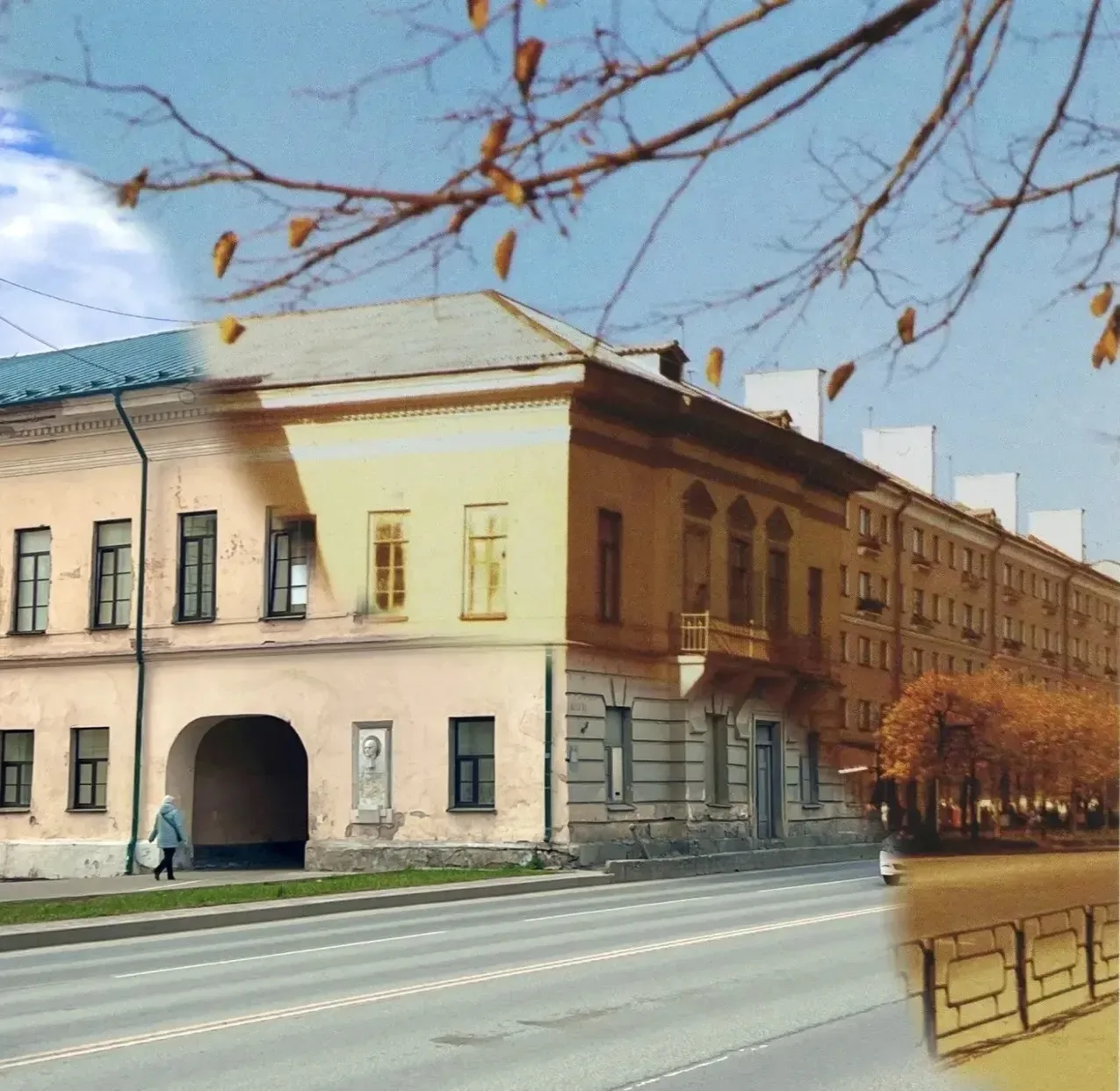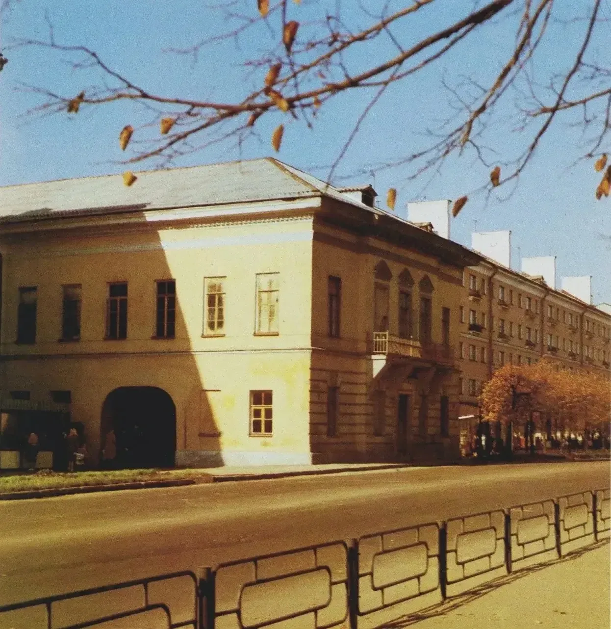 Сегодня на фотографиях здание с богатой историей – Дом Брылкина (Губернский почтамт) на улице Советской, 7. Это одно из немногих сохранившихся в Пскове зданий конца XVIII века — его дата постройки, 1793 год, до сих пор видна на фронтоне. Здание известно также под названиями «Старая почта», «Путевой дворец».