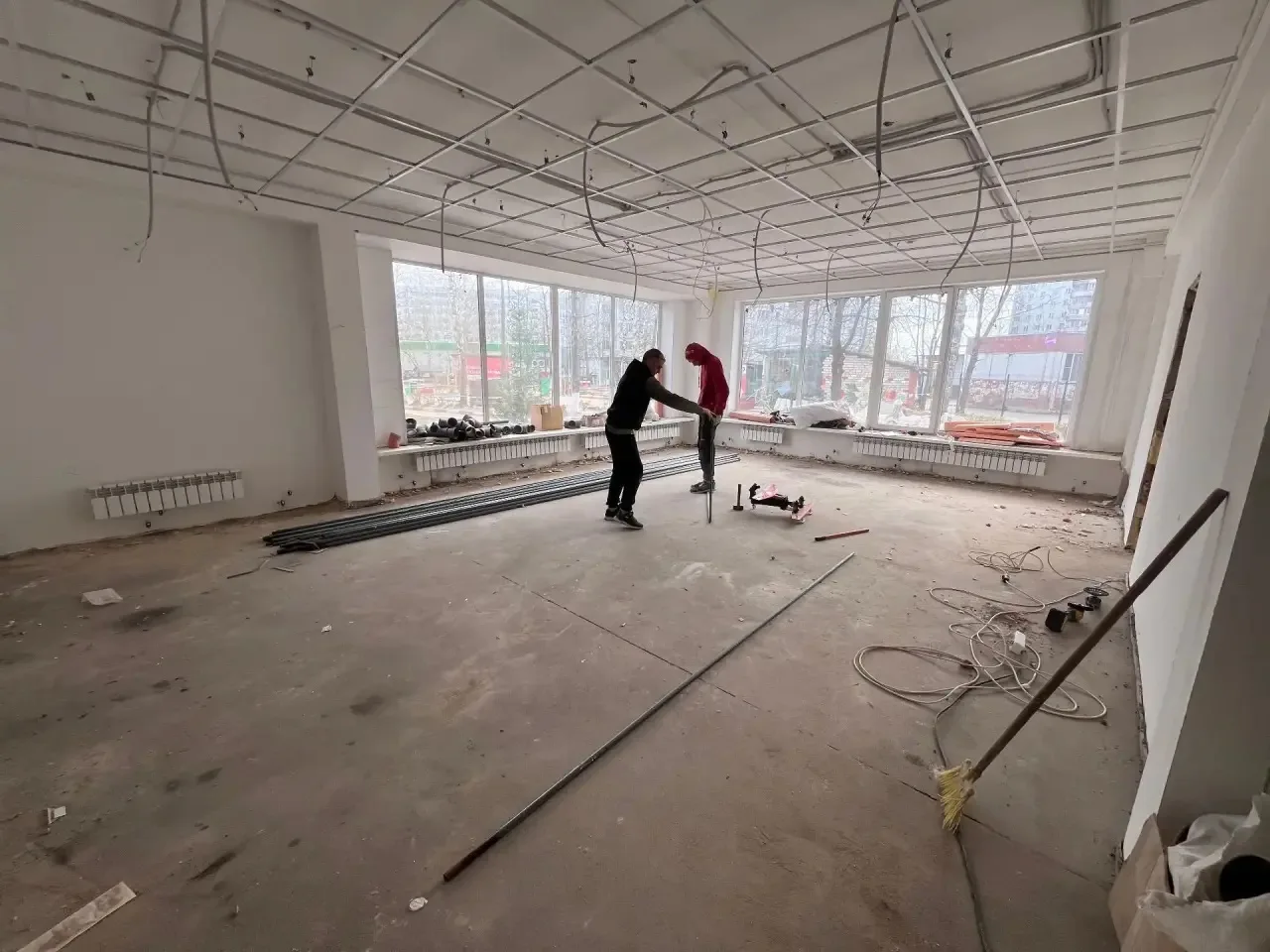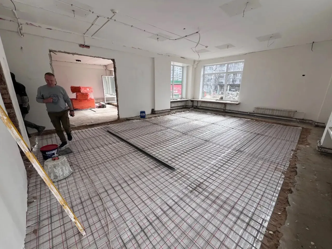 На объекте уже проведена коммуникация, выполнено оборудование тёплого пола. В ближайшее время рабочие приступят к чистовой отделке помещений.