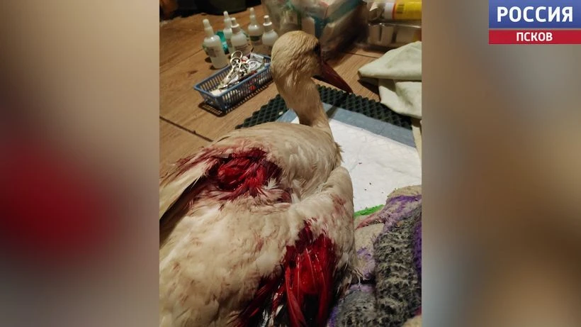 В "Доме белого аиста" спасли раненную птицу. Истекающего кровью аиста доставили в приют из деревни Новоселье Сланцевского района. Там животное хорошо знают и даже зовут по имени - Федор. Он из года в год возвращался в излюбленное место и доверял людям. Но что случилось с аистом, неизвестно. Открытый перелом плечевой кости и костей предплечья. Его пришлось прооперировать - полностью удалить крыло. Как рассказывают в центре "Дом белого аиста", Федя сейчас привыкает жить с одним крылом и мужественно переносит уколы и перевязки.