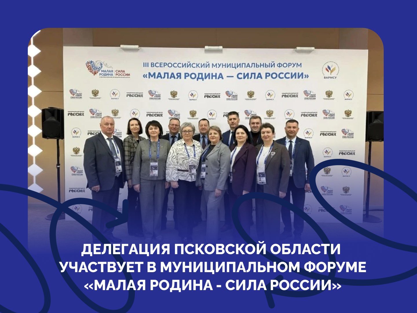 В составе – Главы муниципальных образований, руководители муниципальных организаций, представители профильного блока Правительства Псковской области, руководство Ассоциации «Совет муниципальных образований Псковской области». Всего форум объединил около 7 тысяч человек из 89 регионов страны.
