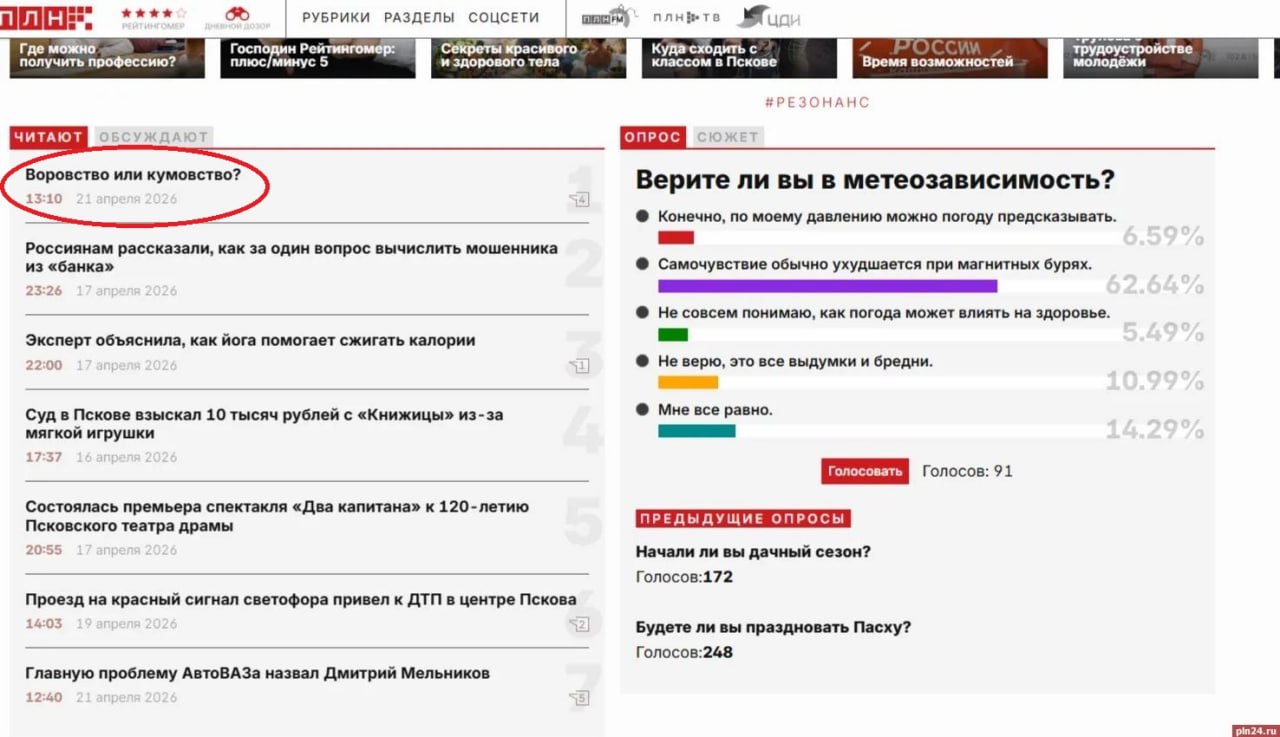 Материал об однодневном заработке сына экс-ректора ПсковГУ стал самым читаемым за неделю