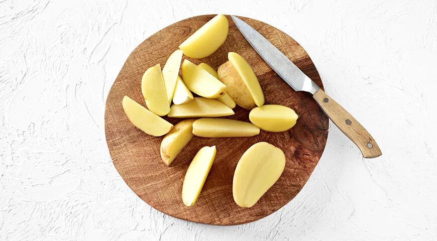 Важным этапом в приготовлении этого популярного блюда является выбор картофеля. Молодая клубень с тонкой кожицей не нуждается в очистке. Достаточно средне нарезать его на дольки, предварительно тщательно промыв щеткой, чтобы избавиться от грязи.