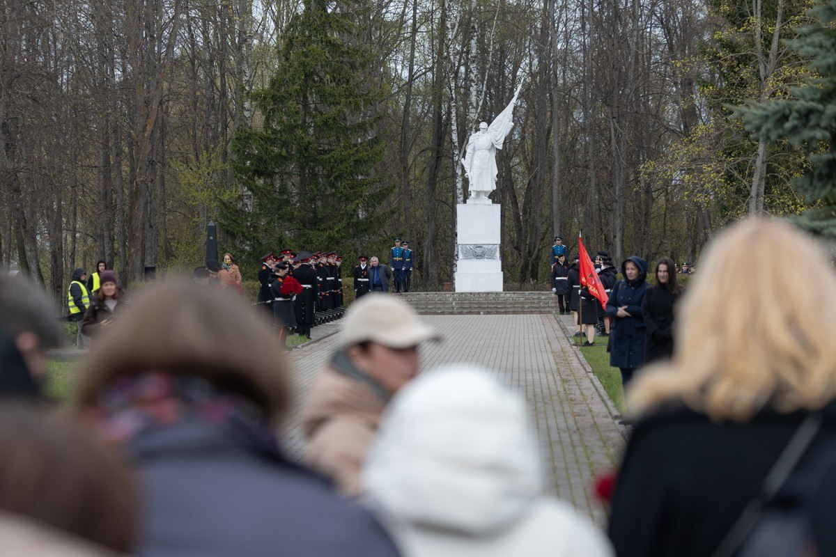 Участники возложили цветы к памятнику на Малкинской высоте – месте его подвига, а также к братскому кладбищу воинов Советской Армии, погибших в 1941–1943 гг. На этом месте покоятся 5,5 тыс. Советских воинов и мирных жителей, расстрелянных и замученных фашистами в военные годы. Здесь же находится могила самого Матвея Кузьмина и 15-летнего ополченца Васи Зверева.