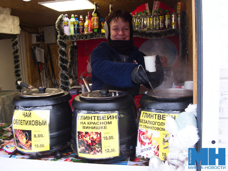 На рождественской ярмарке в Минске развернулась настоящая феерия вкусов и ароматов. Посетители начинают свой путь с гастрономических павильонов, где в прохладе особенно привлекают чай с облепихой и клюквой, а также пряный глинтвейн — как классический, так и безалкогольный, с яркими нотами апельсина.