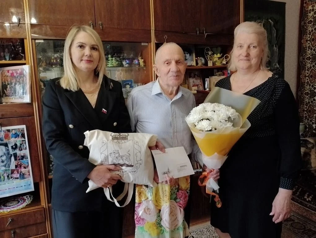 Поздравление от Президента Российской Федерации Владимира Путина, подарок от Правительства Псковской области и цветы с наилучшими пожеланиями крепкого здоровья и счастья вручили заместитель главы администрации Дедовичского муниципального округа Ольга Яковлева и председатель районного Совета ветеранов Светлана Иванова.