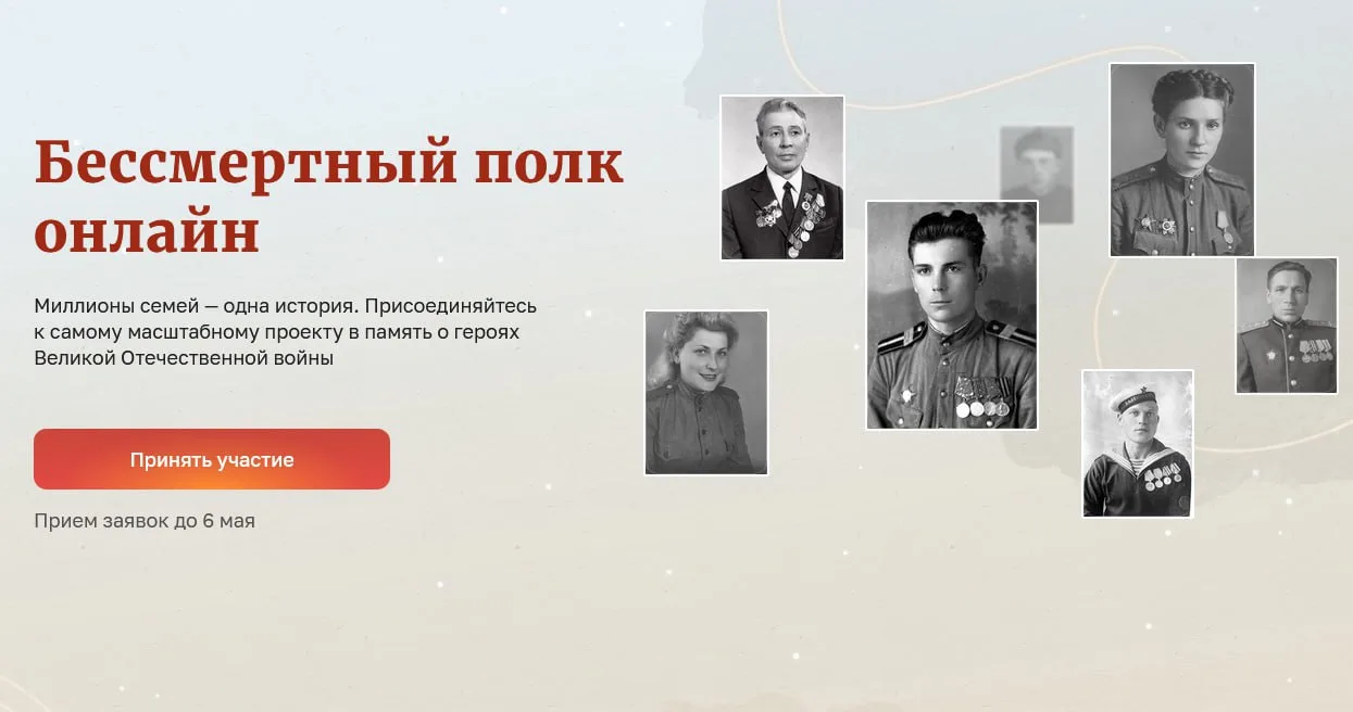 Принять участие в виртуальном шествии сможет любой желающий. Для этого достаточно до 6 мая зарегистрироваться на сайте "2026.polkrf.ru" и загрузить фотографию своего героя.