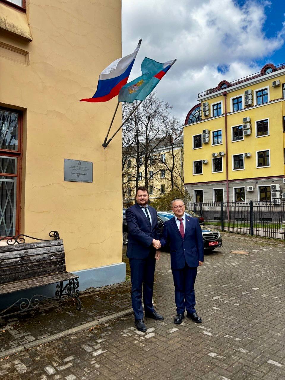 27 апреля и.о. представителя МИД России в Пскове Валентин Сазонов провёл встречу с Генеральным консулом КНР в Санкт-Петербурге Ло Чжаньхуэем. Стороны обсудили состояние и перспективы взаимодействия региона с Китаем в экономической, образовательной, культурной и гуманитарных сферах.
