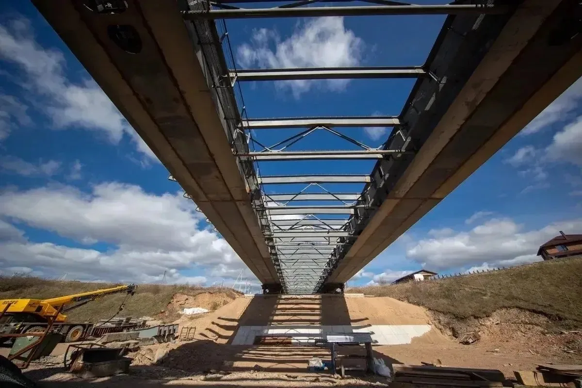 На данный момент строители уже устанавливают четвёртую и пятую русловые опоры. Всего их запланировано шесть. Металлическое пролётное строение собирают на берегу, после чего с помощью толкающих устройств его надвинут на опоры и опустят до проектной отметки. Далее специалисты приступят к устройству железобетонной плиты проезжей части, прокладке инженерных коммуникаций и монтажу освещения.