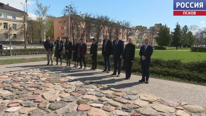 Делегация из КНР возложила цветы к мемориальному комплексу "Могила неизвестного солдата" в Пскове. Впереди рабочие встречи с руководством региона.