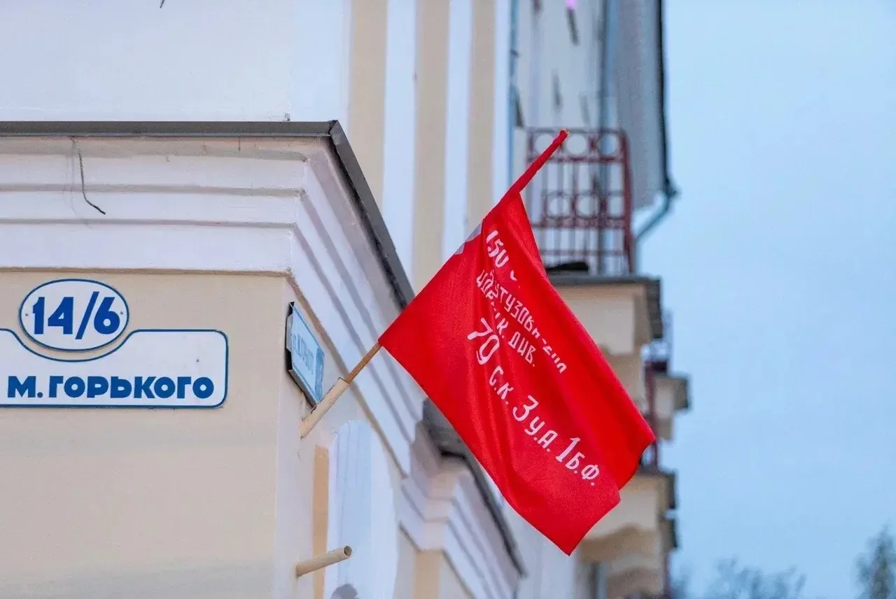 В день нашей региональной памятной даты жители городов и посёлков области, сотрудники учреждений, ведомств и, конечно, органов власти вывесили на зданиях Знамя Победы.