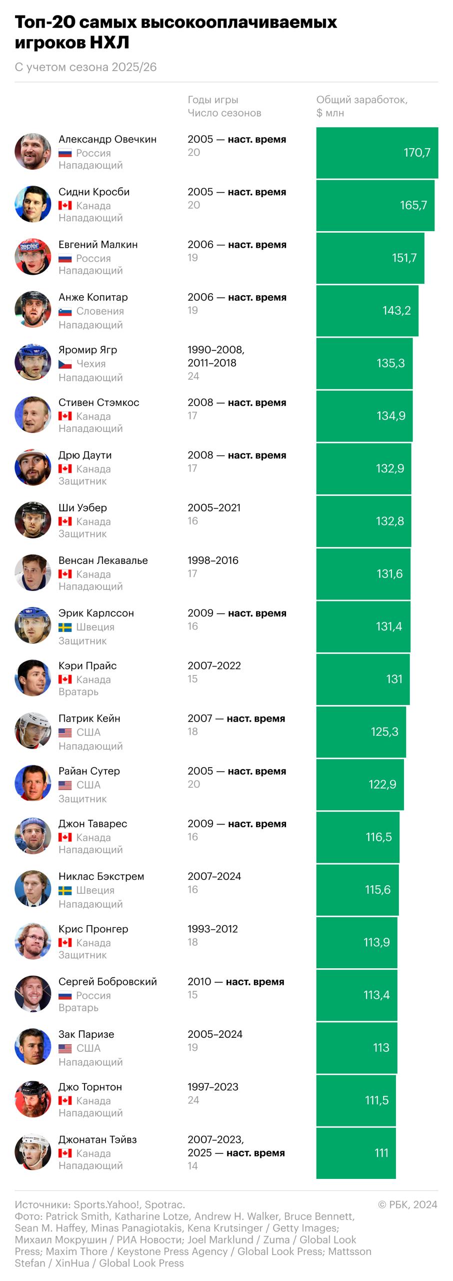 За карьеру Овечкин заработал рекордные по меркам НХЛ $170,7 млн. Но для многих ведущих североамериканских лиг эта сумма невелика. Среди игроков НБА он займет с таким заработком 85-е место. При этом MVP НБА прошлого сезона Шей Гилджес-Александер заработает эту сумму почти за 2 года.